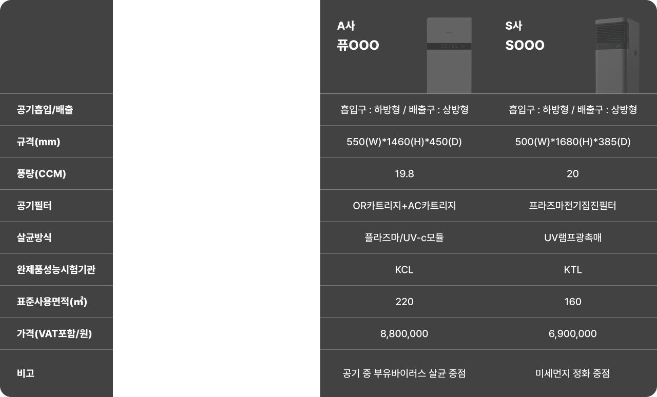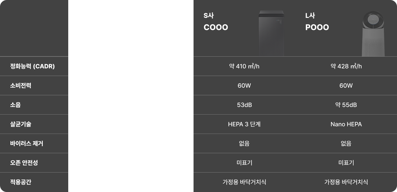상부로 흡입해야 공기 중 부유물질을 제거할 수 있습니다.