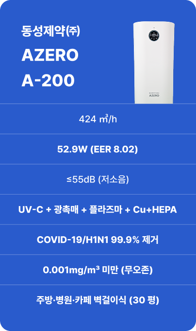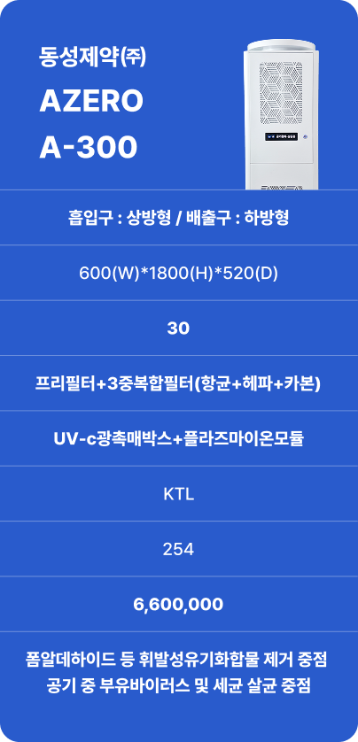 동성 AZERO로 지금까지 없던 공기정화를 실현하겠습니다.